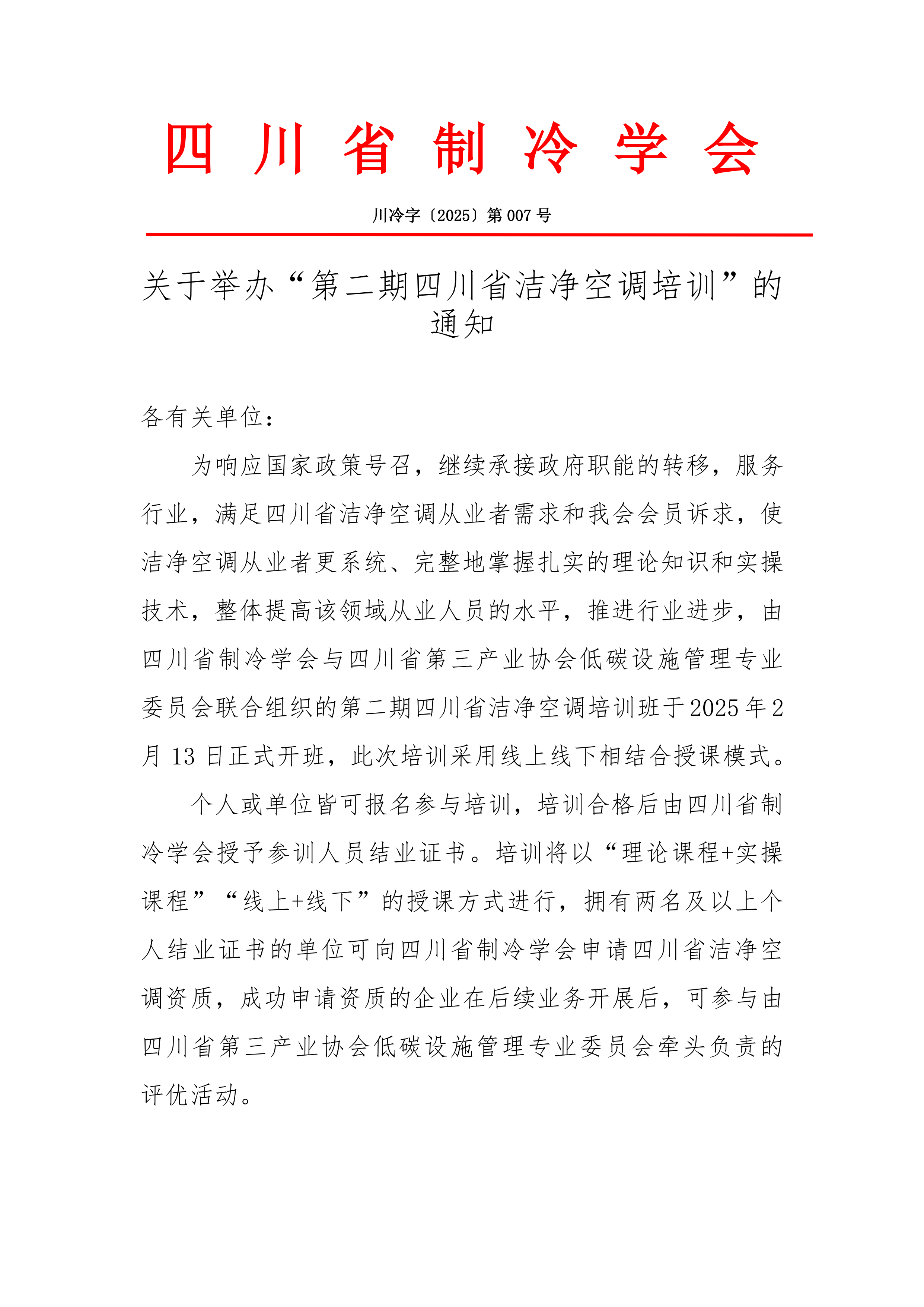 關(guān)于舉辦“第二期四川省潔凈空調(diào)培訓(xùn)”的通知