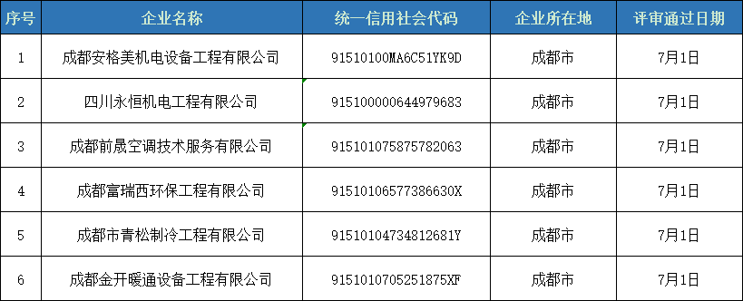 我會對第四批四川省制冷空調維修維保資格證書的申報材料組織了專家審查,現將符合專家審查意見的企業名單在四川省制冷學會門戶網站(http://www.xf1588.cn/)予以公示,以廣泛接受社會監督。公示截止日期為2021年7月5日。